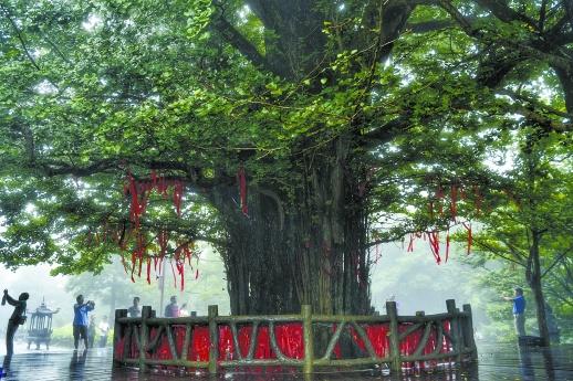 8月9日清晨,新化县大熊山国家森林公园,游客在千年“中华银杏王”前留影。近年,该县大力推进大梅山文化与旅游融合发展,打造湖南继“魅力湘西”和“神奇湘东”之后的湘中文旅生态圈。