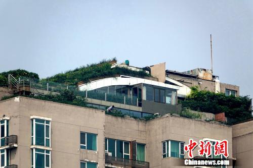 日前,中新网记者来到人济山庄小区看到,4号楼楼顶几乎被各式绿植遮盖,与同小区的其他楼顶对比,这里显得十分明显。