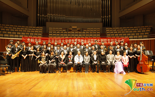 2013年,北京科技大学管乐团“北科华章”音乐会在国家大剧院专场演出。北京科技大学供图