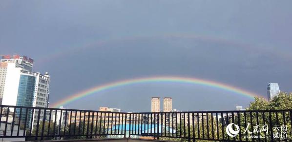 人民网昆明8月28日电 (徐前)8月28日是中国传统七夕的佳节,下午五点雨后的昆明,天边出现双彩虹,引起众多市民围观拍摄,网友更戏称七夕这天彩虹都是“成双成对”,将其称为“爱情虹”。