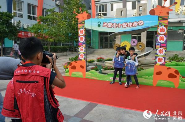人民网北京9月1日电 (尹星云)今天,北京市的中小学生迎来了新的学年。记者在三里屯小学看到,清晨七点刚过,校长小助理、摄影小记者就在学校门口以特殊的方式迎接一年级新生的到来。
