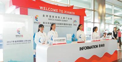 蓝天、碧海、青山、红花、白鹭,“海上花园”正以缤纷的色彩、热情的笑脸迎接各方宾客。金砖国家领导人第九次会晤和新兴市场国家与发展中国家对话会举行在即,东道主城市厦门已准备就绪。