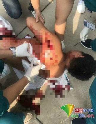 被砍伤快递员。图片来自中通快递官方微博