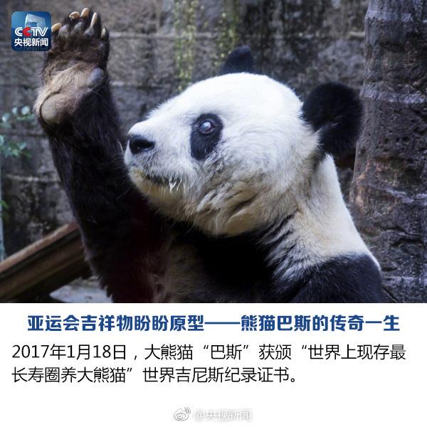 昨日,传奇大熊猫巴斯在福州去世,享年37岁,相当于100多岁的老人。你记得它吗?它是熊猫“盼盼”的原型,它上过春晚,出访过美国,当地人排队5小时只为看它3分钟。2017年9月13日,大熊猫巴斯的生命走到尽头……转!谢谢你带来的快乐!(央视记者 魏明) ????