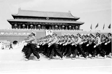 1950年国庆阅兵,身穿50式军服的步兵部队接受检阅。