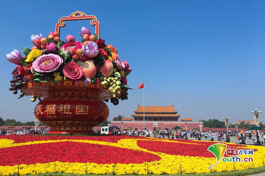 北京天安门广场“花果篮”。 中国青年网记者 马昌 摄