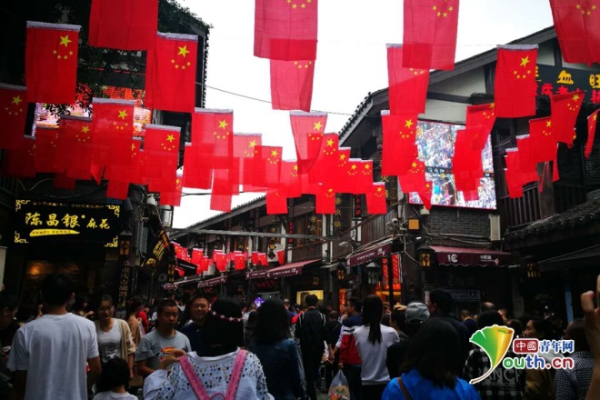 国庆期间,重庆磁器口古镇游人如织。为了控制人流量,景区方面采取了“单进单出”模式:游客从景区正门进入古镇,从另一边门出古镇。