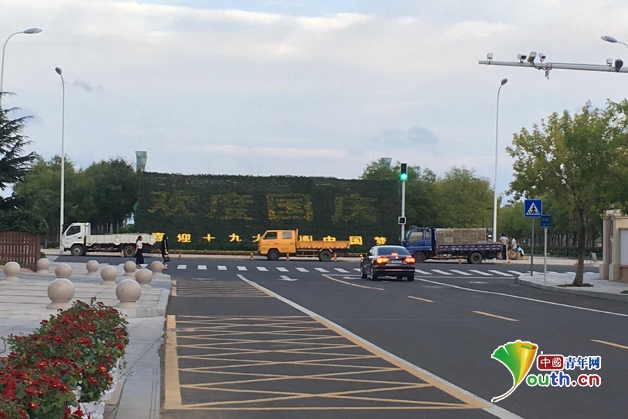 为迎接国庆中秋佳节和党的十九大,青岛市高新区创业大厦附近布置一新。