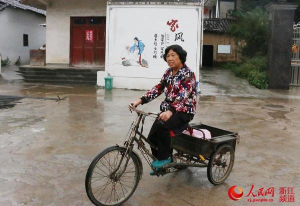 祝根兰几十年如一日骑着三轮车给公公送饭。