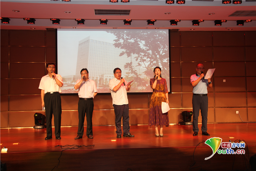 舞台上,方金刚(左三)即兴唱出“人生辉煌在四巡”。第四巡回法庭供图