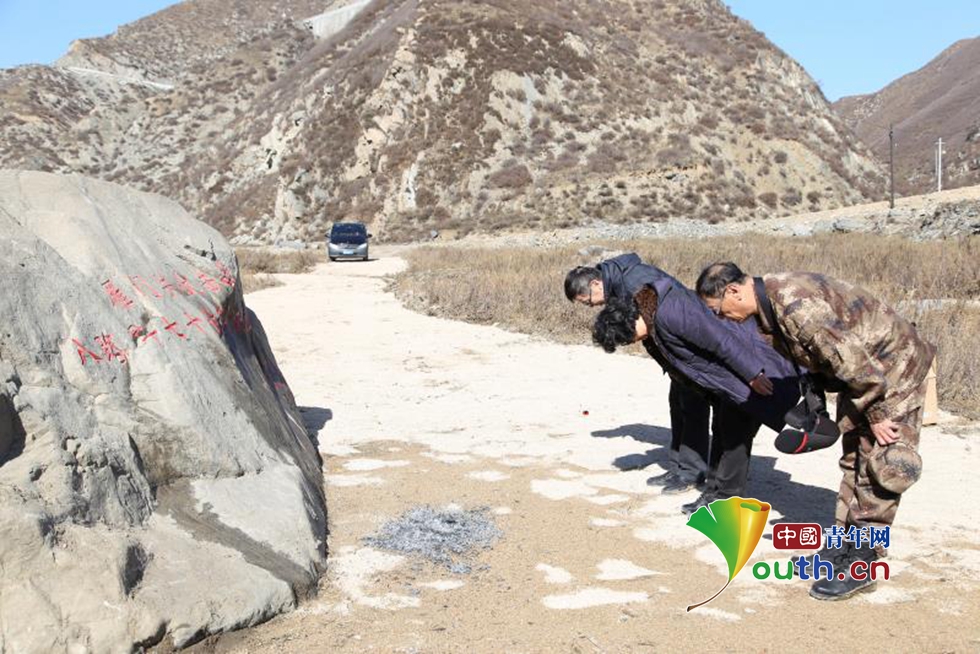 贺晓明擦拭“八路军七十烈士牺牲地”磐石