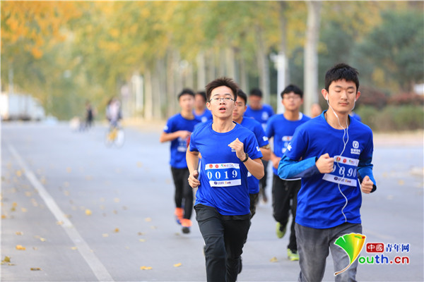 深秋美景下的校园,选手们尽情奔跑。中国青年网记者 周静 摄