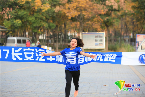 冲过终点线,绽放最美丽的笑容。中国青年网记者 周静 摄