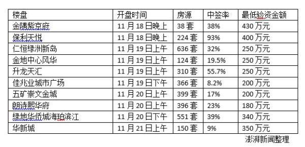 河西这10个楼盘共3177套住房,共有超过14000个登记号(包含重复的),平均中签率不到23%。11月15日8时不同地点同时认筹,为提高摇中概率,有人凌晨出门排第一家,登记完赶赴下一个登记地点;有的全家动员分头去不同的楼盘排队登记。一对年轻夫妻告诉澎湃新闻,对佳兆业楼盘有兴趣的人最多,登记完都快晚上12点了。