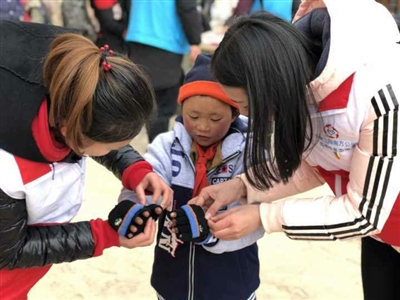 1月10日,共青团云南省委、云南省青少年发展基金会等组织和带领青年志愿者,深入“冰花男孩”所在的学校鲁甸县新街镇转山包小学及附近高寒山区学校,送去了“青春暖冬行动”所募集的首批10万元网友的爱心捐款。