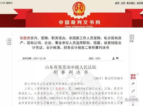 2015年的最后一天,即12月31日,张敬贵落马。两年后的2017年12月25日,该案在莱芜中院终审宣判,那些触目惊心的细节获得公开。从罪名和涉案金额来看: