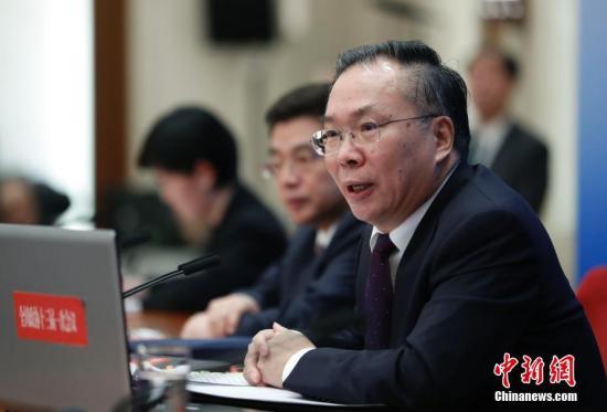 3月2日,全国政协十三届一次会议新闻发布会在北京人民大会堂一层新闻发布厅召开,大会新闻发言人王国庆向中外媒体介绍本次大会有关情况并回答记者提问。中新社记者 杜洋 摄
