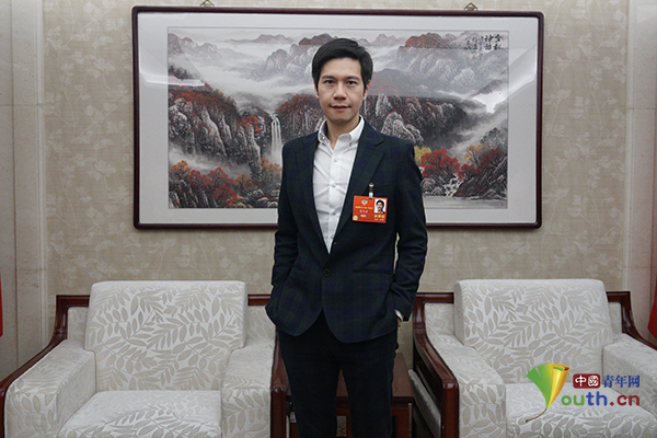 全国政协委员、高锋集团董事局主席吴杰庄接受中国青年网记者采访。实习生支慧媛 摄