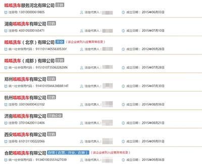 “呱呱洗车”多数地方分公司已处于注销状态。 国家企业信用信息公示系统网站截图