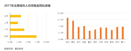 2017全国人均月租金涨幅较2016年上涨25.8%