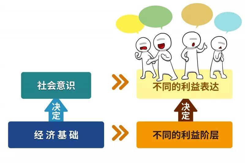 马克思在《序言》中指出,人们的社会存在决定人们的意识。这什么意思呢?其实他的主张是,我们所有的社会观念都是在一定经济基础上产生的。在历史上,人们经常会提出很多不同的政治主张,并且还习惯于把这些政治主张说成是普遍的、全人类通用的。其实,这些主张只不过是一些特定经济利益的表达,“焦大是不会爱上林妹妹的”。不同社会经济地位的人,不同立场的人,他们的观点是不会一致的,也不存在代表一切人利益的普遍真理,这是马克思唯物主义史观教给我们的基本前提。