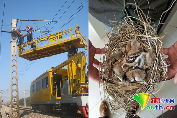 鸟儿在铁路沿线筑巢。通讯员 徐晨 摄