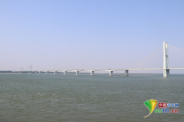 从荆江大堤观音矶头眺望,长江水清澈而美丽。中国青年网记者刘喆 摄