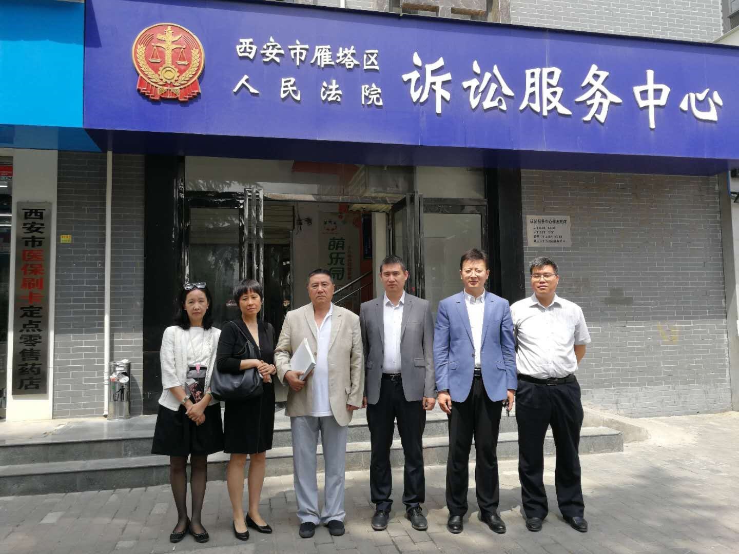 叶家后人与律师在西安市雁塔区人民法院诉讼服务中心办理诉讼相关事宜