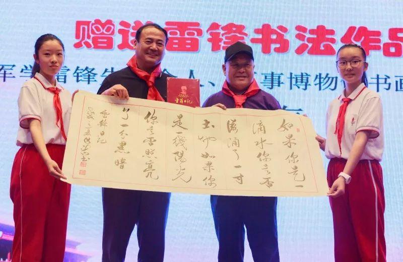 活动中还举行了赠书仪式,活动主办方向石油附中师生赠送了由人民出版社出版、雷锋杂志社主编的《新时代雷锋精神读本》《见证人讲述雷锋日记》两本新书和刚出版的《雷锋》、《中国教师》杂志等书刊。全军学雷锋先进个人、军事博物馆书画院副院长李洪海赠送了《雷锋日记》书法作品。