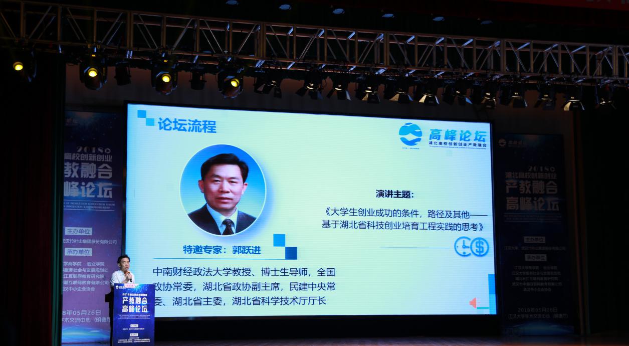 中南财经政法大学教授、博士生导师,全国政协常委,湖北省政协副主席,民建中央常委、湖北省主委,湖北省科学技术厅厅长郭跃进厅长,就大学生创业成功的条件,路径及其他进行了重要演讲,并结合湖北省科技创业培育工程实践进行深入思考。