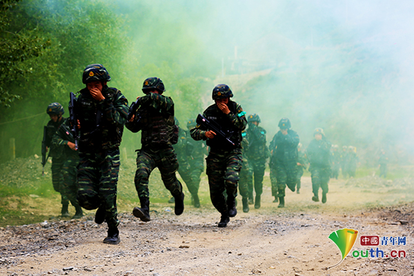 中国青年网北京6月13日电 (记者 刘喆 通讯员 洛桑扎西余兴勇 焦正刚) “有12名暴恐分子在甘南汽车站实施破坏,沿着夏河方向逃窜,上级命令我们立即实施追捕。”特战队员迅速登车开进,投入战斗。6月12日下午两点整,随着导调命令下达,武警甘肃总队甘南片区第二季度“魔鬼周”极限训练拉开战幕。
