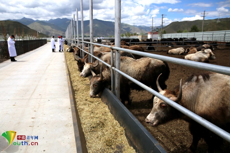 西藏泰成乳业有限公司短期育肥的牦牛。中国青年网记者刘利影 摄