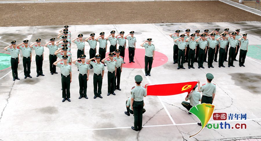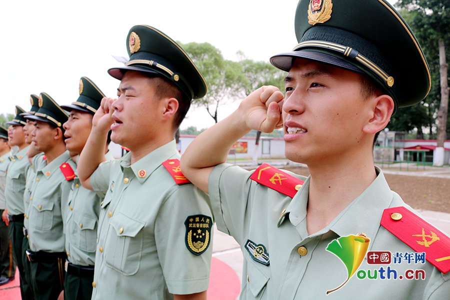 面向党旗,官兵们激情澎湃。中国青年网通讯员雷键摄