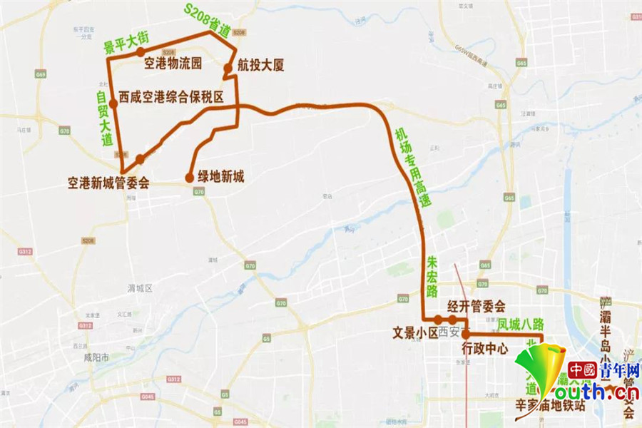 南线共设8站,全程76公里,北线公设11站,全程74.5公里。两条线路的定制通勤车,由空港新城委托西咸公交集团代为运行。