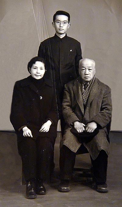 1961年1月,26岁时的厉声教与父亲民国著名教育家厉麟似、母亲上海钢琴家唐丽玲