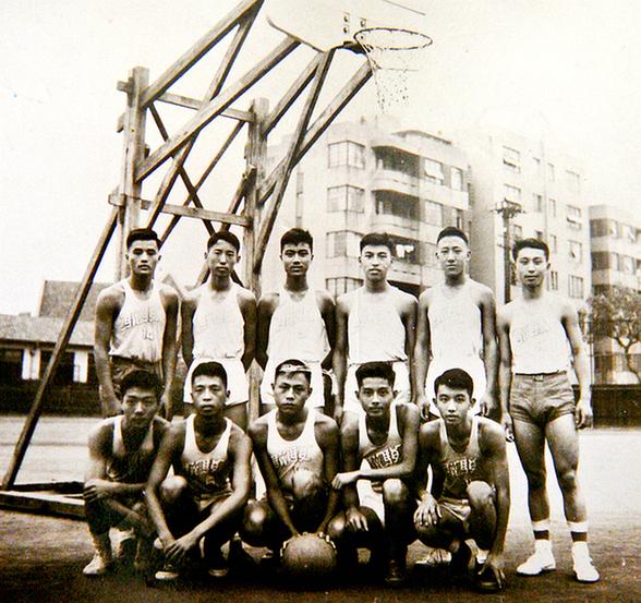 厉声教极具体育天赋,足球和篮球球技均十分出众,在市西中学就读期间已在上海市小有名气。图为1952年9月,上海市市西中学骏骥篮球队(前排右一为厉声教)。