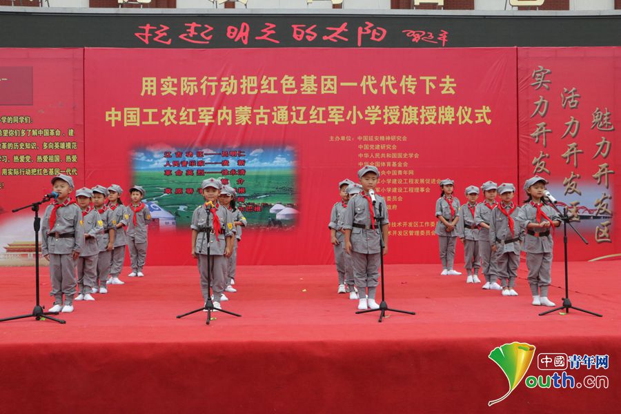 为学习习近平总书记回信精神,进一步落实“用实际行动传承红色基因”的重要指示精神,赓续红色血脉,8月7日,中国工农红军内蒙古通辽红军小学授旗授牌仪式在通辽举行,这标志着内蒙古自治区第二所红军小学正式落地蒙东。