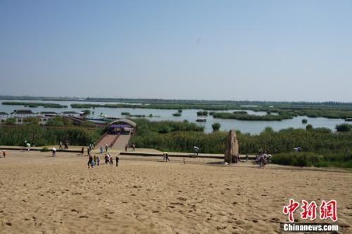 中新网宁夏石嘴山市8月14日电(姜雨薇) 宁夏沙湖景区旅游资源丰富、自然景观多元,犹如一颗璀璨的明珠,镶嵌在美丽富饶的宁夏平原上。开发建设29年来,从一个名不见经传的渔湖发展成为国家首批5A级景区,全国35个王牌旅游景点、中国十大魅力湿地。