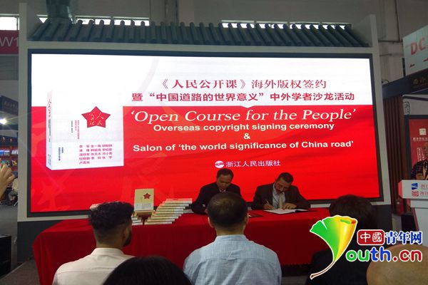 8月22日,由浙江人民出版社出版的社科类畅销书《人民公开课》海外版权签约暨“中国道路的世界意义”中外学者沙龙活动在北京国际图书博览会上举行。
