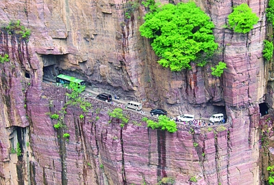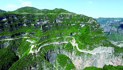 这样的奇景让人赞叹大自然的鬼斧神工,但是千百年来却一直是当地山区民众出行最大的险阻。20世纪下半叶起,世代居住在豫西北和晋东南两省交界太行山区的人们,为了改变与世隔绝的闭塞面貌,以愚公移山的精神,克服重重困难,在绝壁之上先后开凿出7条通往外界的公路,使天堑变成了通途。这些公路是南太行地区特有的景观,被称为“挂壁公路”。