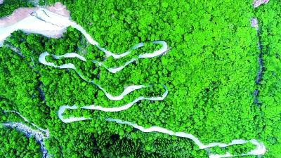 连接郭亮村挂壁公路和大山之外的盘山公路。新华社记者 李博摄