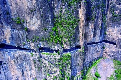 虹梯关挂壁公路长度约10公里,凿山穿洞,道路艰险,风光独特。新华社发