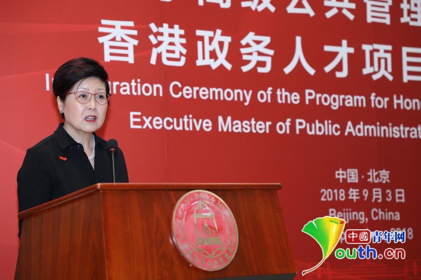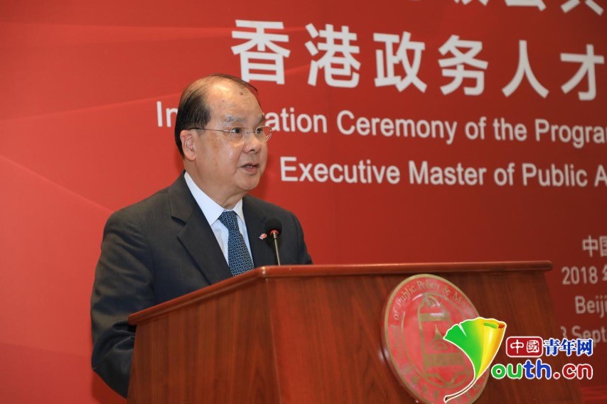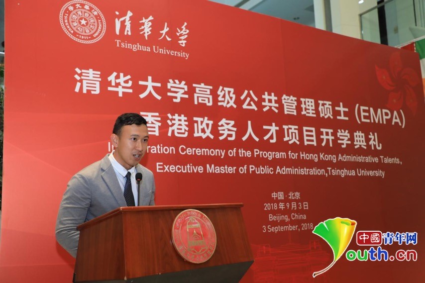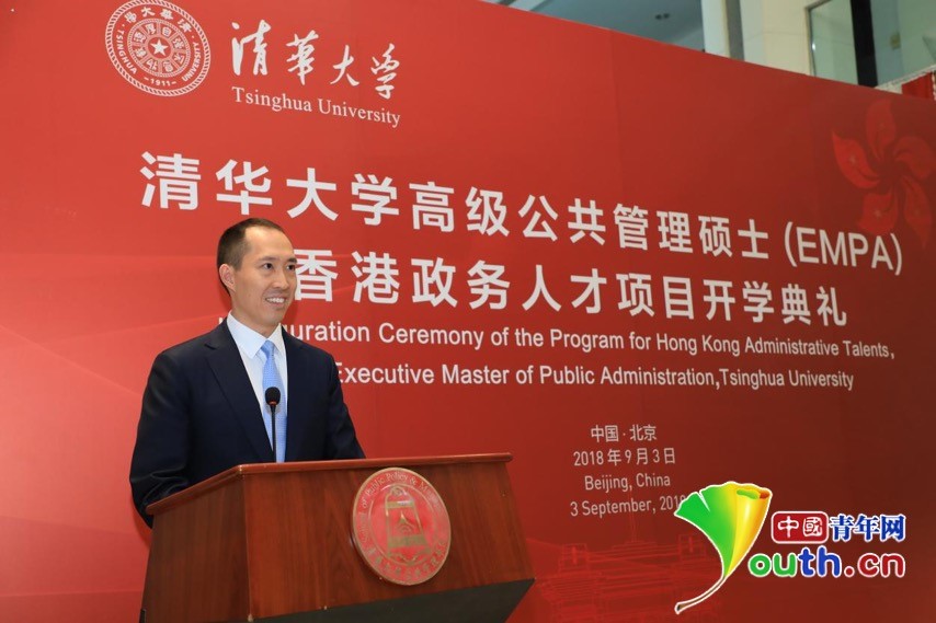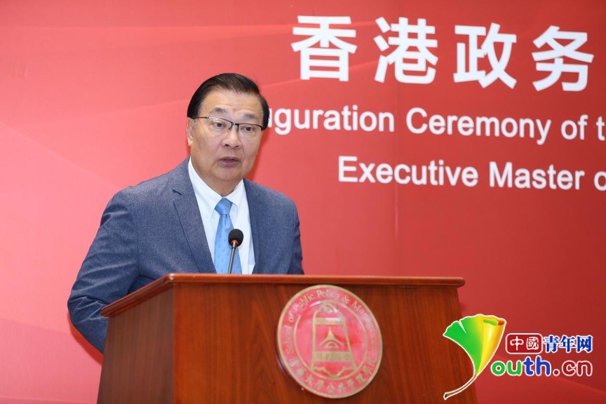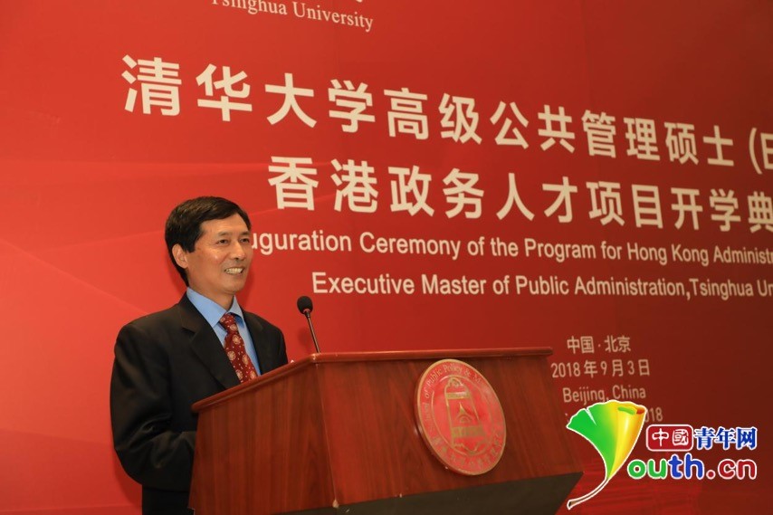 中国青年网北京9月3日电(记者 陈琛)9月3日下午,清华大学高级公共管理硕士(EMPA)香港政务人才项目(以下简称“香港政务人才项目”)开学典礼在清华大学公管学院大厅隆重举行。中央人民政府驻香港特别行政区联络办公室主任王志民、清华大学党委书记陈旭、香港特别行政区政务司司长张建宗等领导,第十三届全国人民代表大会华侨委员会主任委员王光亚、第十三届全国人大常务委员会委员谭耀宗、香港立法会前主席曾钰成、信和集团副主席黄永光先生等项目顾问,以及来自全国人大、全国政协、国务院港澳办、教育部、中央统战部、北京市委统战部、北京市政协、信和集团和黄廷方慈善基金、清华大学等有关部门的领导和嘉宾,香港政务人才项目全体新生等100多人出席活动。开学典礼由清华大学公共管理学院党委书记彭宗超主持。