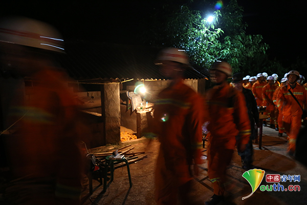 9月8日晚,地震第一夜,武警普洱支队救援官兵走村入户深入排查。中国青年网通讯员 梁维 摄