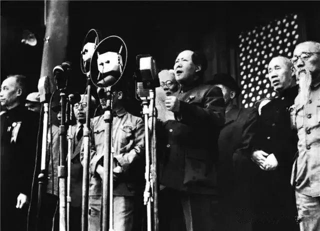 1949年9月30日,政协第一届全体会议举行闭幕式,新当选的中央人民政府主席、副主席登上主席台