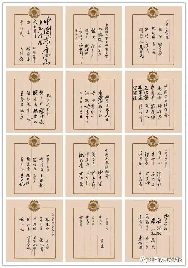 政协第一届全体会议部分参加单位代表签到纸