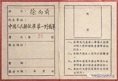 政协第一届全体会议代表证