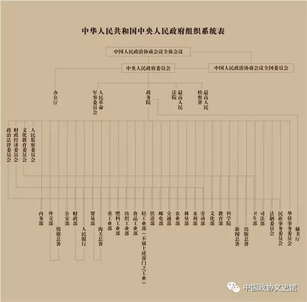 政务院下属34个部、委、院、署、行中,担任正职的民主党派、无党派民主人士共15人,担任副职的42人。如担任正职的民主人士有:轻工业部部长黄炎培,邮电部部长朱学范,农业部部长李书城,水利部部长傅作义,林垦部部长梁希,政务院及所属单位机构编制审查委员会主任、粮食部部长章乃器,司法部部长史良(女),教育部部长马叙伦,卫生部部长李德全(女),文化部部长沈雁冰,文化教育委员会主任、科学院院长郭沫若,人民检察委员会主任谭平山,华侨事务委员会主任何香凝,出版总署署长胡愈之等。