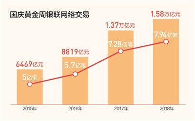 本报北京10月8日电 (记者吴秋余)中国银联8日发布2018年国庆黄金周银联网络交易数据。国庆黄金周期间,银联网络交易总金额达到1.58万亿元,交易总笔数7.94亿笔,日均较去年国庆黄金周分别增长31.9%和24.5%。今年国庆黄金周7天的银行卡跨行交易规模超过去年国庆黄金周8天的总量,创国庆黄金周历史新高。
