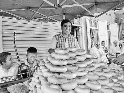 喀什老城区里正在卖馕的小伙子 光明日报记者 王瑟摄/光明图片